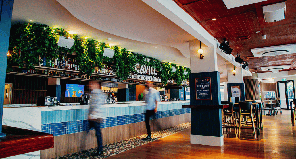 Amongst the hustle and bustle of The Cavill Hotel our high bar area will be the best place for those more casual affairs, with the flexibility of high tables. The space offers views of Cavill Avenue, with close proximity to our live entertainment. The space can be partitioned for privacy depending on group size.